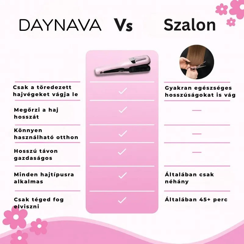 Daynava Split Ends Trimmer csak a sérült hajvégeket célozza, a hajat egészségesen, dúsan és ellenállhatatlanul simán hagyja.